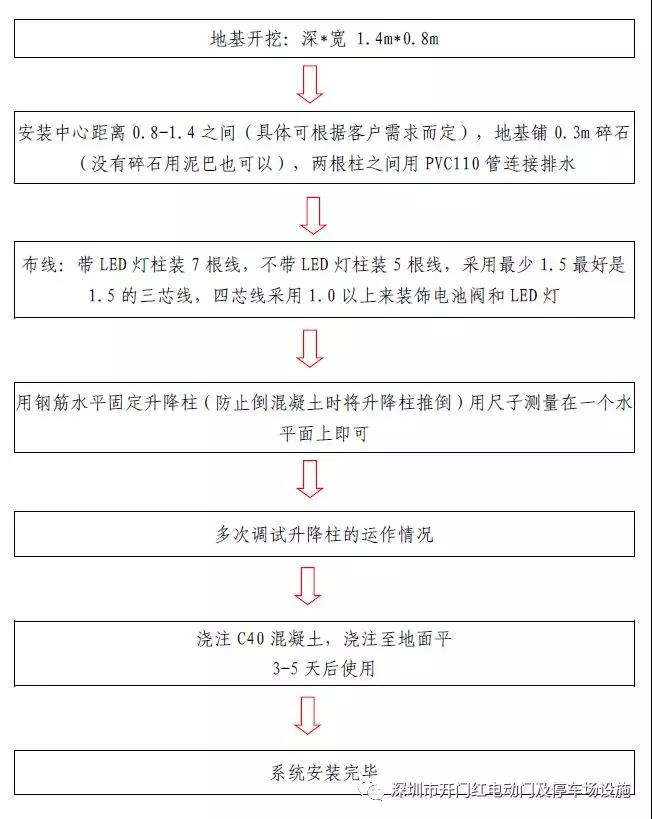 1.升降柱体。采用304国标不锈钢组成(无缝钢管)焊接而成,具有高强的承重和抗撞能力;柱体内无电器、线路设置,防水、安全。该装置埋设在车道上或大门的指定位置,通过值班人员的指令限制车辆通行。